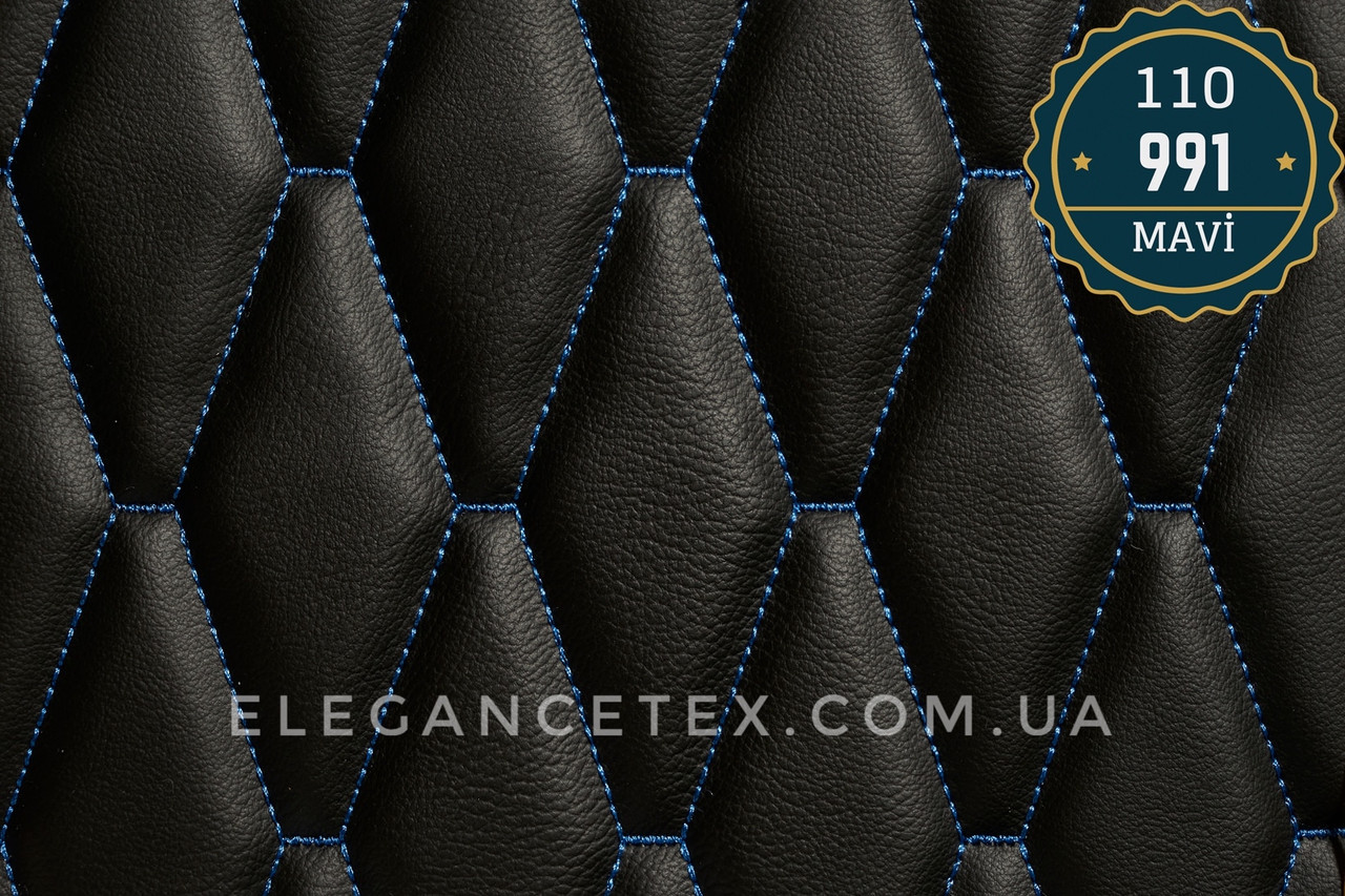 Високоякісний перфорований шкірозамінник дубльований поролоном і синтепоном (товщина поролону 10 мм), турецького виробництва широко застосовуваний в автомобільній промисловості, що має високу зносостійкість і еластичність. Зроблений і прошитий на сучасному обладнанні з рівними строчками та візерунками, ромб 9,5х4 см. Ідеально підходить для оброблення стелі, бічних панелей, сидінь і дверей.
